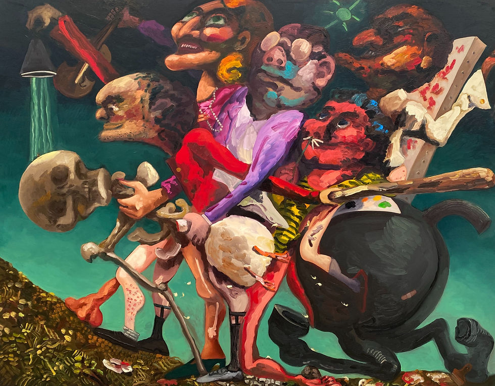 Elle peindra aussi Fanatics (photo 1 ci-dessous), en référence aux rassemblements qui se sont produits au moment de l'élection de Donald Trump aux Etats Unis.